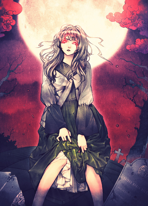 僕の個性でもある、和ゴシック的テイストを前面に押し出し始めた頃の一枚で、洋風世界観の中に花札的意匠を盛り込んでみたりと、色々遊びのある一枚です。