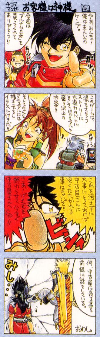 別にGW中に再プレイしてたワケじゃありませんが『アルナムの牙』です。 こんな当ページを長きに渡って読んでる時間の浪費家な方達にとってはくどいかもしれませんが、僕にとっては忘れる事のできない名作中の名作RPGです。(色んな意味で) このゲームと出会ってなかったら、当ページも存在してなかったと思います。 そんなお気に入りのゲームソフトですので今もなおこうして大切に保存してあります。