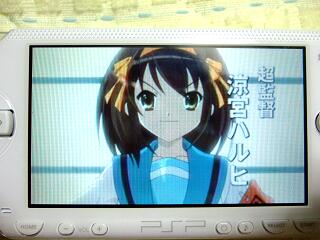 携帯動画変換君を使って、試しにハルヒのOPをエンコ(画質:1500Kbps)して見てみましたが、フツーに見る分には申し分の無い画質ですね。(動きの激しいシーンではやや破綻が見られた。) PSPの液晶はちょうど画面比16:9だし、見てないまま溜まってるガラスの仮面でも入れようかな。 終わし |