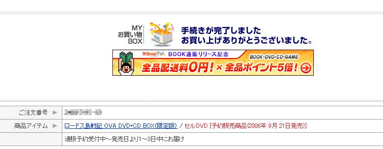 Gyaoでの放送が効いたんでしょうか。 1999年に発売された本DVD-BOXは中古で10万超もするほどプレミア価格がついてしまってましたが、上記の通り今年9月に復刻発売とあいなりました。 そして僕の指先@マウスは、購入手続きを着々と進めてしまったのであります。 いや、あの内容でこの価格って、凄い安いと思うんですけど。 OVAで、しかもあのクオリティのアニメが13話入ってるんですよ。 単純に定価(3万円)÷13で考えても、1話たったの2300円ですよ。 僕の中では迷う要素なんてどこにも無いですよ、ええ。 とりあえず9月まで生きる目標ができて良かったです。 明日は今週唯一の休みなので、充実した引き篭もりライフを送ろうと思ってます。 終わし |