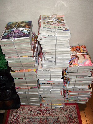 夏季休暇1日目。 部屋に散在してた雑誌(スーパージャンプ、少年チャンピオン、コミック・ガンボ)を一掃しようと、まとめてみたらこんなにありました。 チャンピオン、ガンボはだいたい半年分、スーパージャンプに関しては1年分はあるんじゃないでしょうか。 なにわともあれ室内の足の踏み場がだいぶ増えました。 おわひ |