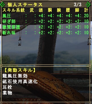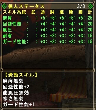 この土日はラオシェンロンのイベントクエと、ギザミで金稼ぎしかやってなかった感じです。 そのおかげか、紅ラオ装備一式と龍刀【紅蓮】を作ることができました。 ラオ装備は作るだけでなく、実戦でも使えるよう強化もそこそこできました。 現在、胴と腰をMAX(Lv7)まで強化し、足をLv6。手と頭はLv2で、スキル効果と合わせて防御力は386です。 上位レウス亜種ではたぶんまだ即死しちゃうかもしれませんが(龍耐性マイナスだし)、それ以外では普通に使える装備になりました。 この紅ラオ装備、一式揃えても装備だけじゃ何のスキルも発動しないという、なんともアレな装備。 しかも素のまんまじゃ装飾品のスロットが1個もないので、そういった意味でも強化は必須な装備です。 ![]() とりあえず発動しそうなスキルの装飾品を補って、こんな感じになってます。 強化すればあと5スロットは装飾品付ける余裕がありそうなので、あと1つか2つはスキル付けられそうな気がします。 何にしても強化するにはラオの素材が足りないので、またラオのイベントが来るまでは強化はほとんどできないですが…。 次ラオが来た時は全箇所をMAXにしてみたいですね。 ![]() 今日のこどちゃは2話分鑑賞し、73話目まで鑑賞終了。 直澄の母ちゃんが出てきたところですね。 しかし、ホントこの母ちゃんは悪い母ちゃんですね。 てめぇの血は何色だぁ?!って感じです。 おわひ |