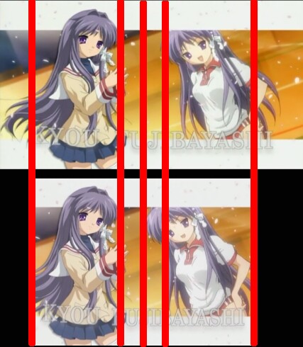 そんなワケでBS-i版は、おおよそ本来の比率であろうビスタ(16:9)サイズでの放送でした。 上の比較を見て判る通り、BS-i版は地上波の4:3比の放送では見切れてて見れなかった部分も見えてます。
