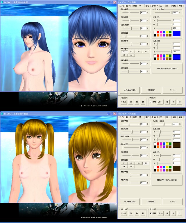 基本、スライダーで値を調整するだけでキャラが色々作れるので、やってて楽しいです。 唯一残念なのは身長はいぢれないってところでしょうか。 ロリペタを作ってもどこか不自然ですよ? おわひ |