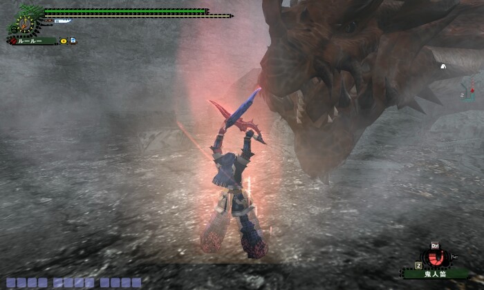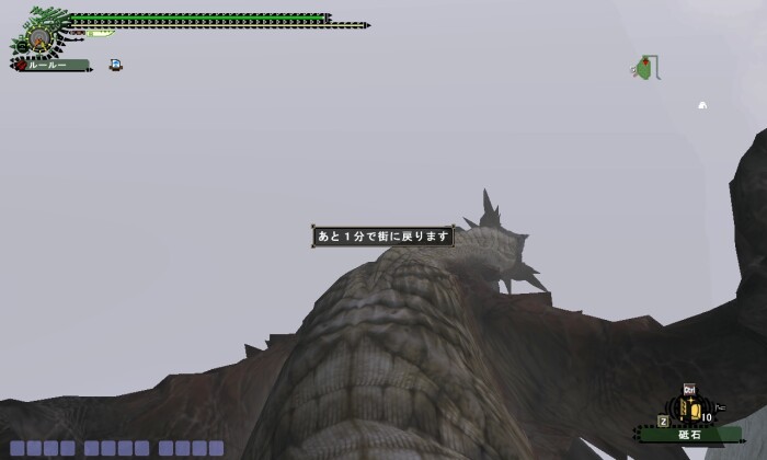 先週のリファインアップデートで古龍系が弱体化され、ラオもえらく弱くなってしまったご様子。 上位蒼ラオでも4人PTなら、武器種を問わなくても門前撃破が余裕でできちゃう程に。 たぶん、龍双剣なら3人PTでも門前撃破行けるんじゃないでしょうかね。 で、あまりに弱くなってしまったので下位ラオならソロでも行けるんじゃまいかと思い、挑戦してみました。 ちなみに装備は天地+蒼ラオで、攻撃アップ猫飯と鬼人笛を使用。