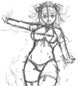 エロ三国志DD、7話〜最終話まで一気に見ました。 なんか最後の方はもう普通に手からビーム出したりお空を飛んだりと、見事なまでにドラゴンボール化してましたね。 1回見る分にはエロんな意味で楽しめたけど、また繰り返して見ようとは思わない内容かな。 ![]() 今日はエラく久しぶりに、ぢつにまるっと2年ぶりにこのホームページの名前に相応しい事をしちゃいました。 下書き段階では構図が固まりきらず、清書しながら詰めてく感じで描きましたが、意外にまだ描けるもんだと自画自賛。 エロ三国志見た後のせいか、妙にムチムチなボディになっちゃいましたが。 後日元気があったら色でも塗りたいと思います。 おわひ |