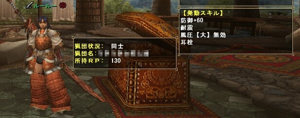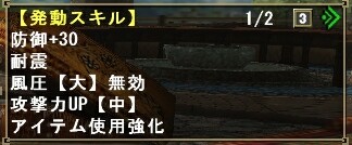 また1つ、メモ装備作ってしまいました。 これは発動スキルから察するに笛職用ですかね。 聴覚保護も風圧無効も付かないし、特にガードできない武器を持って前線で戦うにはちょとキツい装備ですね。 後ろから支援に徹するか、前線で戦うならアイテムの使用が早い片手剣かな。 そんな感じで今日はモンハン三昧でした。 おわひ |
